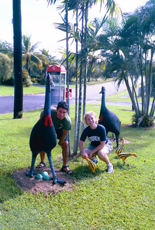 Cassowaries at the gas station (hint - they're not real)